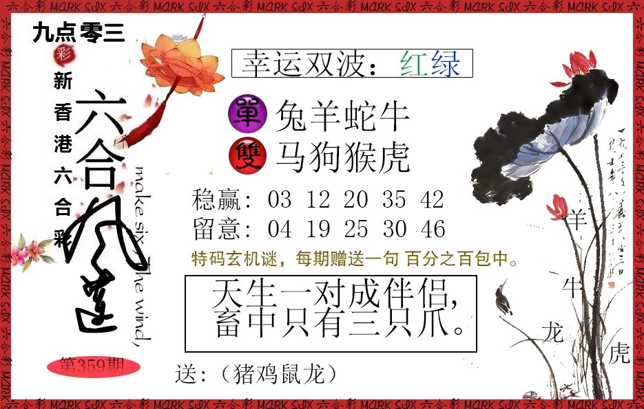 | 第359期:双【狗猴龙鼠】单【鸡羊猪牛】@开:?00✔ | ||||